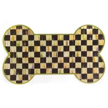 MACKENZIE-CHILDS Pup Placemat, Cute Pet-Food Mat for Dog Bowls and Cat Bowls, Black-and-White Courtly Check
