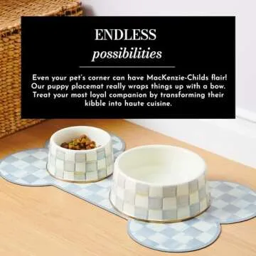 MACKENZIE-CHILDS Pup Placemat, Cute Pet-Food Mat for Dog Bowls and Cat Bowls, Gray-and-White Sterling Check