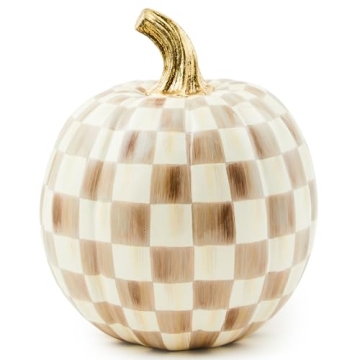Bring the enchanting spirit of fall into your home with the MACKENZIE-CHILDS Small Pumpkin, an exquisitely crafted decorative piece that embodies the magic of the season. This delightful pumpkin, made from high-quality resin, features a stunning hand-painted Mocha Check design that embodies elegance, vibrancy, and charm. Its sophisticated brown-and-white color pattern, combined with a fabulously designed gold stem, ensures that it will be an eye-catching addition to your seasonal decor, whether...