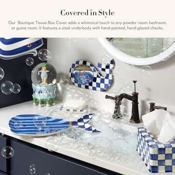 Show moreIntroducing the MacKenzie-Childs Tissue-Box Cover, a stunning addition to your home decor that elegantly combines functionality with artistic expression. Designed with attention to detail, this tissue holder features a delightful blue-and-white Royal Check pattern, bringing a touch of modern farmhouse style to any room. Crafted from durable metal, it's not only attractive but also resistant to breaks, making it a practical choice for any area of your home. Whether it’s in your kitchen, bathroom, or guest room, this tissue-box cover effortlessly transforms a simple tissue box into a chic decor element, perfectly embodying MacKenzie-Childs' philosophy that everyday items can possess extraordinary beauty. Get ready to elevate your home's aesthetic while being prepared for those inevitable sneezes and sniffles!