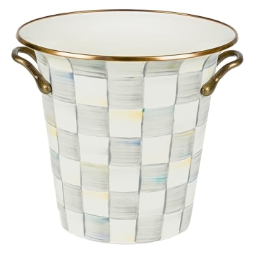 More than just a cooler, the MacKenzie-Childs wine bucket features a meticulously hand-glazed heavy-gauge steel underbody that promises durability while maintaining its stunning visual appeal. Wrapped in an exquisite enamel coating, the cooler showcases subtle hand-painted grey-and-white checks that are sure to catch the eye of your guests. Whether it's a sophisticated dinner gathering or a casual movie night, this ice bucket effortlessly fits into diverse settings, promising to be an enduring conversation starter.