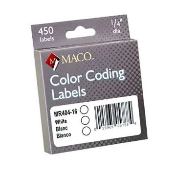 MACO White Round Color Coding Labels, 1/4 Inches in Diameter, 450 Per Dispenser Box (MR404-16)