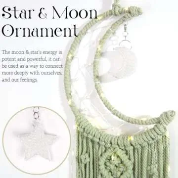 Show moreIntroducing the exquisite Macrame Moon Dream Catcher—a charming blend of artistry and meaning that brings tranquility and inspiration to any space. This stunning wall hanging, crafted from the finest cotton fibers, features a beautiful crescent moon shape that symbolizes new beginnings and the cyclical nature of life. Designed with meticulous attention to detail, its intricate patterns and chic bohemian style add a whimsical touch, making it a perfect addition to your bedroom or nursery decor.