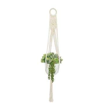 Show moreTransform your living space into a cozy oasis with our Macrame Plant Hanger (Pack of 3). This beautifully crafted set of indoor macrame hangers is perfect for showcasing your favorite plants while adding a touch of bohemian charm to any room. Made from high-quality, durable cotton rope, these plant hangers are not only visually stunning but are designed to hold your plants securely and safely. Each hanger features an intricate knot design that elevates the aesthetic of your home and allows your plants to thrive in bright, indirect light. With easy installation, you can effortlessly hang them from your ceiling or wall hooks.