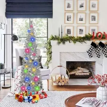 Show moreIntroducing the MACTING Christmas Pop Up Tree - a delightful addition to your holiday décor that blends elegance and functionality seamlessly. Standing at a stunning 5 feet tall, this silver collapsible tree is perfect for tight spaces like apartments and corners, bringing a festive spirit to any room without overwhelming your living area. The tree’s glossy finish and glittering tinsel create a shimmering effect that captures the magic of the season, ensuring that your home radiates joy and warmth.