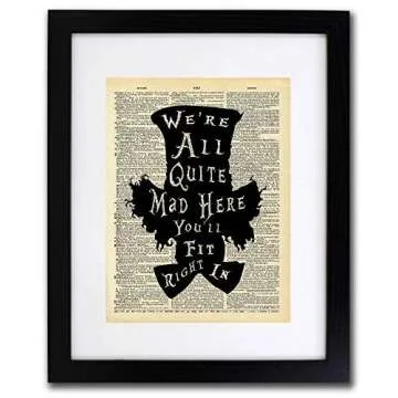 Mad Hatter Alice In Wonderland - Quote Wall Art - Vintage Art - Authentic Upcycled Dictionary Art Print - Home or Office Decor - Inspirational And Motivational Quote Art Print Only D400