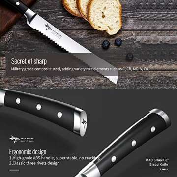 MAD SHARK Bread Knife 8 Inch Pro Serrated Bread Cutter,German High Carbon Stainless Steel Cake Knife with Ergonomic Handle, Ultra Sharp Baker's Knife