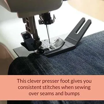 Madam Sew Bulky Seam Jumper – Hump Jumping Button Sewing Tool and Flush Plate Presser Foot for Chunky Denim and Hemlines – Compatible with Husqvarna Viking, Brother, Singer, Janome and Pfaff