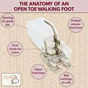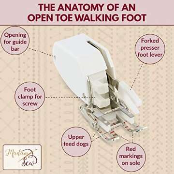 Madam Sew Open Toe Walking Foot for Quilting and Sewing | Stitch Through Multiple Layers & Match Prints | Compatible with Most Low-Shank Sewing Machine Models | Brother, Singer, Janome, Babylock, More
