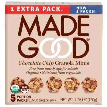 When compared to other granola snacks on the market, Made Good Granola Minis Chocolate Chip stand out. Many granola products are often high in sugars and lacking nutritional value, making it a struggle to find a genuinely healthy option. In contrast, MadeGood's commitment to organic, non-GMO ingredients ensures you're getting quality in every bite, along with allergy-friendly ingredients that many brands overlook. Their focus on providing full servings of vegetables while maintaining great flavor sets them apart, making them a superior choice for both taste and nutrition.