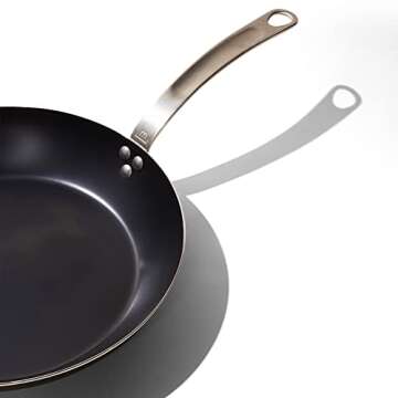Show more Introducing the ultimate hybrid cooking companion designed to elevate your culinary journey—this remarkable frying pan brings together the finest qualities of cast iron and stainless steel, ensuring you achieve restaurant-quality results right in your home kitchen. With a total diameter of 12.5 inches and a cooking surface that measures 9.25 inches, this pan is perfectly sized for crafting delectable meals for family and friends. Proudly crafted in France, the Made In Carbon Steel Frying Pan showcases the skill of seasoned artisans committed to delivering a product that not only meets but exceeds expectations in both performance and durability.