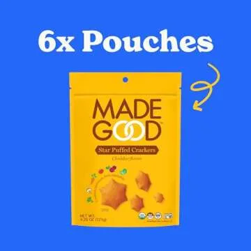 Show moreIntroducing the MadeGood Cheddar Star Puffed Crackers – a uniquely delightful snack that combines nutrition and flavor in a fun star shape! These crunchy wonders are not only dairy-free, gluten-free, and vegan, but they also boast a fantastic cheddar flavor that brings comfort to your snacking experience. Perfectly portioned, each of the six bags contains 4.26 ounces of light and airy crackers, making it easy to satisfy cravings guilt-free. Ideal for all ages, these snacks embrace a nostalgic taste reminiscent of childhood favorites while delivering wholesome goodness.