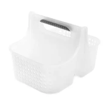 Madesmart 2-Compartment Soft Grip Shower Tote for Bathroom Organization, Plastic Storage Shower Caddy Bucket, Small, Frost