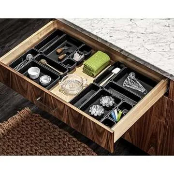 Experience the satisfaction of pulling open a drawer filled with organized items for the first time. This interlocking bin pack is not just a storage solution; it's your partner in maintaining tranquility and order in your home. Transform your chaotic drawer into a marvel of organization with the Madesmart Interlocking Bin Pack today!