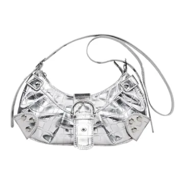 Show more Introducing the MadGrandeur Small Silver Purse, a chic and stylish addition to any wardrobe that perfectly blends functionality with trend-forward design. This Y2K aesthetic hobo bag showcases a brilliant silver metallic finish that is sure to catch the eye and adds a touch of sophistication to any outfit. Measuring 11.0 inches wide and 6.3 inches high, it provides ample storage space without compromising the compact silhouette that's crucial for easy management. Whether you're heading to brunch, shopping, or heading to work, this bag will cater to your everyday needs.