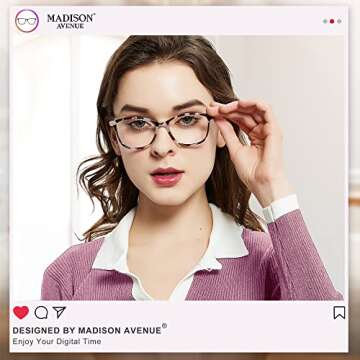 Madison Avenue Blue Light Blocking Glasses for Eye Strain Relief and UV Protection - Tortoise Design