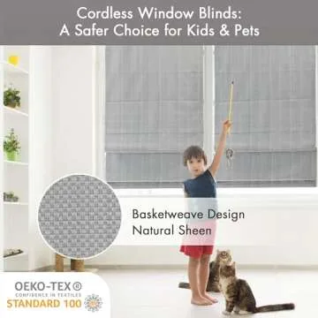 Madison Park Galen Cordless Roman Shades - Fabric Privacy Single Panel Darkening, Energy Efficient, Thermal Insulated Window Blind Treatment, for Bedroom, Living Room Decor, 35" x 64", Grey