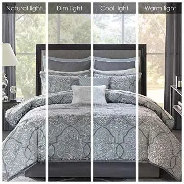 Madison Park Lavine Cozy Bed in a Bag Comforter Set, Traditional Luxe Jacquard Design All Season Down Alternative Bedding with Cotton Bed Sheets, Bed Skirt & Pillows, Queen Blue 12 Piece