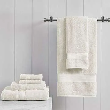 Madison Park Organic 100% Cotton Bathroom Towel Set, Hotel & Spa Quality Highly Absorbent, Quick Dry, Include for Shower, Handwash & Facial Washcloth, Multi-Sizes, Ivory
