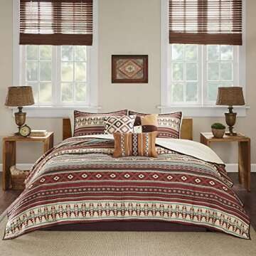 Madison Park Quilt Rustic Southwestern All Season, Breathable Coverlet Bedspread, Lightweight Bedding, Shams, Decorative Pillow, King/California King (104"x94"), Taos, Ikat Red/Spice 6 Piece