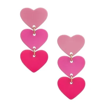 Show more Introducing the Madison Tyler Heart Pink Earrings for women - a stunning set of statement earrings that expertly blend elegance with a playful twist. These lightweight acrylic earrings are not just accessories; they’re a fashion statement that captures attention while offering all-day comfort. Crafted meticulously, each earring features a vibrant hot pink hue that injects a lively pop of color into any look, making them perfect for a day out with friends or an elegant evening occasion. Designed with your skin’s sensitivity in mind, these earrings are made from hypoallergenic materials, ensuring you can wear them all day without worrying about irritation.