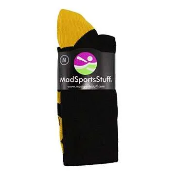 MadSportsStuff Gold Ribbon Childhood Cancer Awareness OTC Socks (Black/Gold, Medium)