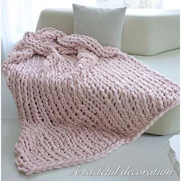 Maetoow Chenille Chunky Knit Blanket Throw (50×60 Inch), Handmade Warm & Cozy Blanket Couch, Bed, Home Decor, Soft Breathable Fleece Banket, Christmas Thick and Giant Yarn Throws, Light Pink