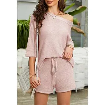 Mafulus Women's 2 Piece Outfits Sweater Sets Off Shoulder Knit Top Shorts Matching Suits Cute Pajama Lounge Set