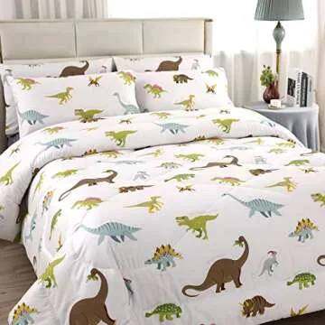 MAG 3Pcs Dinosaur Bedding Comforter Set, Dino White Base Twin Comforter Set,for Toddlers Kids,Boys Teens and Girls,Super Soft Microfiber, Twin Size (1 Comforter + 2 Pillowcases)
