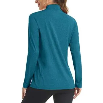 MAGCOMSEN Womens 1 4 Zip Pullover Long Sleeve UPF 50+ Quick Dry Athletic Hiking Workout Shirts for Women Peacock Blue XL