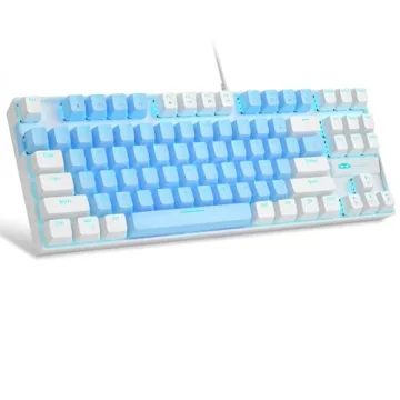 Show more Experience gaming and typing like never before with the MageGee 75% Mechanical Gaming Keyboard. This beautifully designed keyboard features a compact TKL layout, optimizing your workspace while ensuring every essential key is within reach. Its striking blue and white color scheme not only adds a touch of style to your setup but also houses robust features that elevate your gaming experience. The tactile feedback provided by the mechanical blue switches offers an excellent typing sensation, perfect for both intensive gaming sessions and long typing tasks.