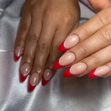 MAGIC ARMOR Almond Fake Gel Nail Tips 120pcs Almond Press on Nails Medium French Design Clear Full Cover Artificial Almond False Nails with Nail Glue for Home DIY Nail Salon Nail Extension,10 size