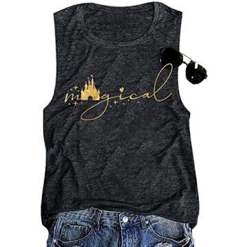 Magic Castle Tank for Women Magic Kingdom Graphic Vest Summer Casual Vacation Sleeveless Tanks Tops(Dark Grey,XL)