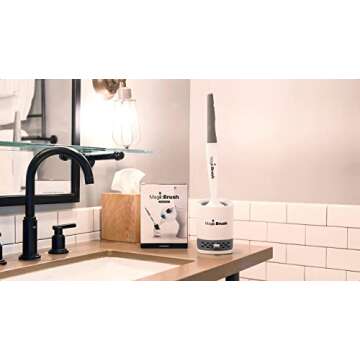 MagicBrush Magic Silicone Toilet Brush, TikTok Trend Item, Fillable Store Bowl Cleaners in Handle, Ventilated Storage Caddy, Optional Wall Mount, No Scratch Brush Head,, White, Grey