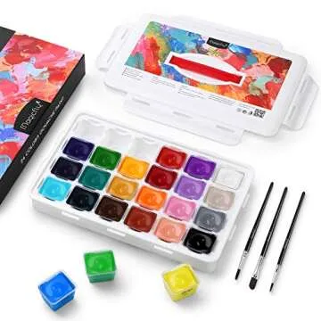 Magicfly Gouache Paint Set - 24 Vibrant Colors in Jelly Cups with Brushes and Case