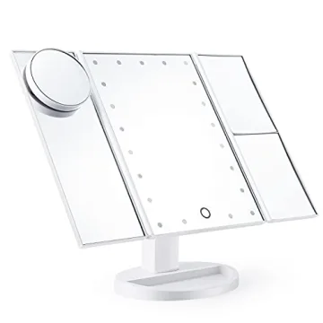 Magicfly Vanity Mirror with 21 LED Lights, 10X Magnification and Tri-Fold Design