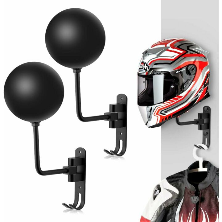 Show moreIntroducing the ultimate storage solution for all your helmet needs - the 180-degree Rotating Helmet Holder. This premium helmet holder is designed with versatility and durability in mind, making it an essential addition to any home, garage, or office. Crafted from high-quality space aluminum, this holder boasts a strong load-bearing capacity and stability, ensuring that your helmets and apparel are securely stored. Its unique double hook design features a 4.73-inch ball, increasing the contact surface for better storage of your helmets, while the thicker double hooks provide convenient storage for coats and sportswear.