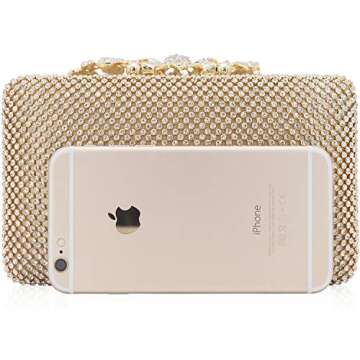 MagicLove Womens Evening Bag with Flower Closure Rhinestone Crystal Clutch Purse for Wedding Party Gold