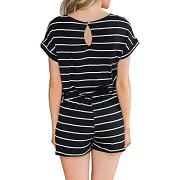 MAGICMK Summer Loose Top Button with Adjustable Short Rompers Jumpsuit - Stylish Comfort in Black and Stripe
