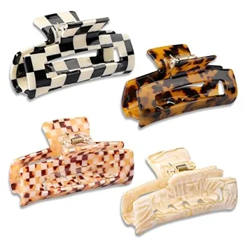 Show moreUpgrade your hair styling routine with the stunning Magicsky 4PCS Hair Claw Clips. Crafted from high-quality acrylic resin, these elegant claw clips feature eye-catching tortoise shell patterns and come in four fashionable colors: checkerboard, leopard, white, and brown. Perfectly sized at 3.4 x 0.9 x 1.6 inches, these clips are not only delightful to look at but also incredibly functional, allowing you to easily pull your hair into chic buns, half-ups, or any stylish updo. Thanks to the double row of teeth, these clips grip hair securely without slipping, making them an ideal accessory for thick or thin hair types.