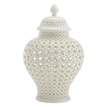 Show moreIntroducing the exquisite White Porcelain Ginger Jar, an elegant focal point crafted by skilled artisans that elevates any home decor with both beauty and functionality. Made from premium ceramics, this mesmerizing ginger jar boasts a flawless finish, complemented by a smooth texture that draws attention to its stunning silhouette. Measuring 16cm x 16cm x 28cm (6.30 inch x 6.30 inch x 11.02 inch), it is perfectly proportioned to enhance your living spaces, making it an exceptional decorative addition for any room.