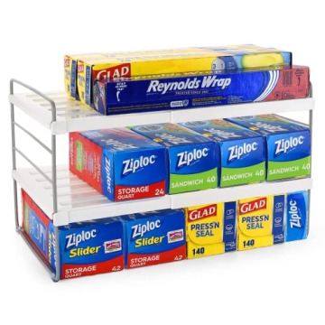 Show more The MAGLADY Adjustable Organizer for Aluminum Foil and Plastic Wrap is the perfect solution for your kitchen organization needs. Tailored for modern-day chefs and home cooks alike, this versatile storage unit efficiently houses a variety of essential items—from aluminum foil and cling wraps to plastic bags, cans, and pouches. Its innovative design allows it to adapt to your space with ease, ensuring that you stay organized without compromising on style. Whether you need quick access to kitchen essentials or want to declutter your pantry, this expandable organizer is a must-have!