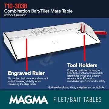 Constructed to endure the rigors of outdoor use, the premium quality craftsmanship guarantees that you will have a reliable space no matter the conditions. Its design features an engraved fish ruler that allows for quick measurements, while the built-in knife holsters and pliers holder keep your tools organized and accessible. Additionally, slotted back channels ensure easy cleanup - an essential feature for those who want to spend more time enjoying their catch rather than cleaning up.