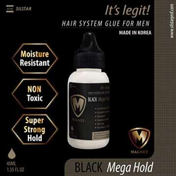 Magnet Wig Glue for Men Black - 1.35oz MEGA Hold/Fast Drying/Frontal Closure, Toupee, Man Weave, Hairpiece, LACE Wig/Oil-Resistant/Waterproof/Moisture Control/Made in Korea