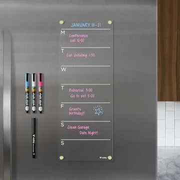 Magnetic Acrylic Weekly Calendar for Fridge, Includes 4 Magnetic Wet-Erase Markers for Refrigerator, 7" X 18".