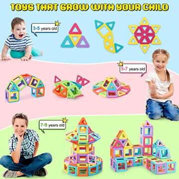 Magnetic Blocks Tiles Toddler Building Toys Edition for 3 4 5 6 7 8 Year Old Girls and Boys Gifts Magnetic Building Toys STEM Learning Educational for Kids Candy Color 52PCS