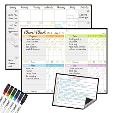 JJPRO Magnetic Dry Erase Chore Chart and Calendar Bundle - Organize with Ease!