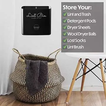 Magnetic Lint Bin For Laundry Room Decor and Accessories 3 PIECE SET Bundle - Laundry Room Organization And Storage For Washer Dryer Large Lint Bins, Dryer Vent Cleaner Kit Lint Brush, Wool Balls