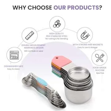 Equipped with double measurement markings that are easy to read and permanent, our measuring cups and spoons stand out in your kitchen. Unlike standard measuring tools, the markings on these utensils won't fade or blur over time. The innovative magnetic nesting design allows the cups and spoons to stack neatly, making storage a breeze! They can even magnetically attach to any metal surface, granting you easy access while cooking or baking.