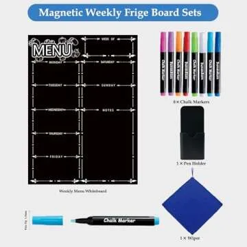 Magnetic Menu Board for Fridge, LiebHome Dry Erase Weekly Menu Planner/Family Calendar 16" x 12" with Grocery List and Notes (Black with 8 Markers)
